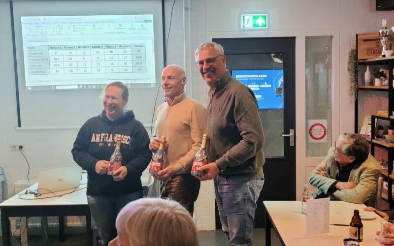 De PubQuiz die vrijdag 23 januari bij Badminton Club Lieshout werd gehouden in de kantine van sporthal De Klumper, is gewonnen door Team Jammie. De teams kregen vragen voorgeschoteld die alle betrekking hadden op het jaar 2025. Zij varieerden van politiek en sport tot media en actualiteit. Hoewel de onderwerpen nog vers in het geheugen lagen, bleken sommige vragen toch verrassend lastig. Na elke ronde werden de antwoorden gegeven. De beheerder van de kantine zorgde voor de hapjes. En dankzij een bijdrage van NOC*NSF, speciaal bedoeld om vrijwilligers in het zonnetje te zetten, kon de club extra uitpakken.